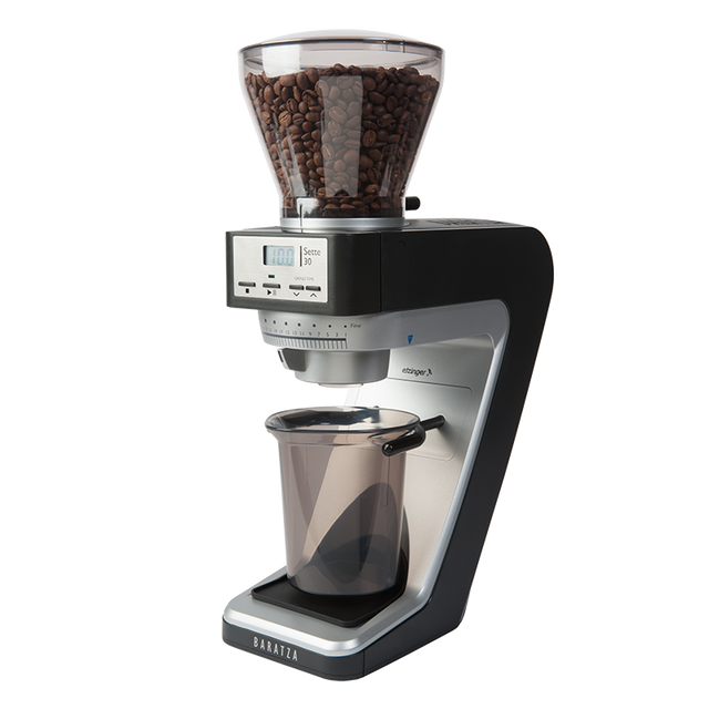 The Sette 30 AP is an inexpensive grinder to get started on an espresso journey, suitable for basic and advanced espresso machines. The Sette 30 AP has a macro only adjustment for grind size, offering 31 steps of adjustment. This grinder incorporates the AP burr, designed for our high end Sette 270/270W grinders, which produces an exceptional espresso grind. It can also be used for grinding for manual brewing methods that require a finer grind (for example, AeroPress and Hario V60) for a very balanced flavor experience. (Please note, this release is a shift in our approach from our initial offering of the Sette 30 as a brew grinder-details here) Designed and perfected in Liechtenstein over a period of 8 years, this technology sets a new standard in simplicity, efficiency, and durability. This new mechanism has the outer burr rotate and the inner burr is fixed, a truly revolutionary design. The design of this mechanism doubles the efficiency of similarly sized grinders. Coffee passes straight through the grinder, vertically, and drops directly into the grounds bin or your portafilter. The Sette 30 has a stationary device holder that allows you to remove and re-orient the arms to grind directly into the supplied grounds bin or a portafilter a standout feature amongst all other home grinders.